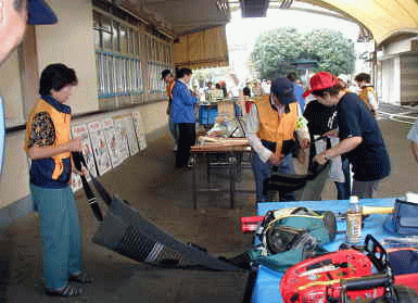 写真は、消防用設備操作技術競技会でボランティア資機材等を展示したようすです。