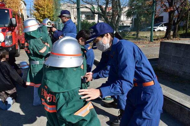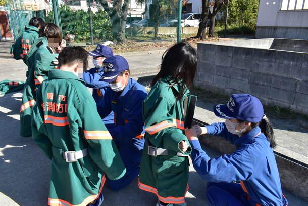 令和7年12月8日月曜日、川崎市立さくら小学校の「みんなが消防士」に臨港消防団第3分団が参加しました。