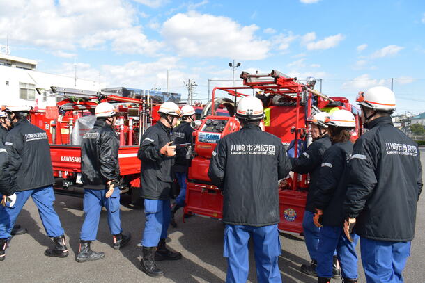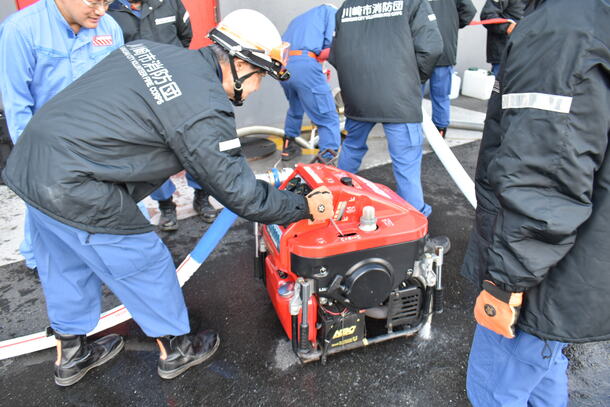 可搬ポンプの基本を学ぶとともに、川崎市の南部4団で研修を行うことにより各消防団の結束力を高めることができました。