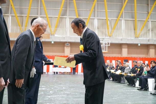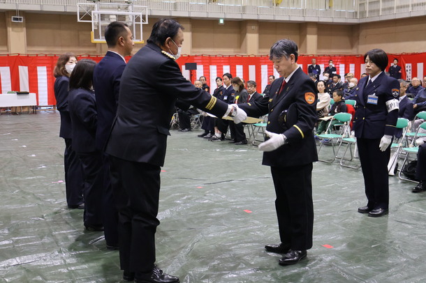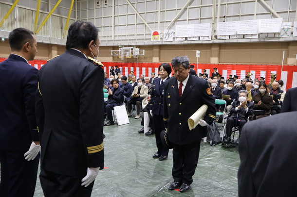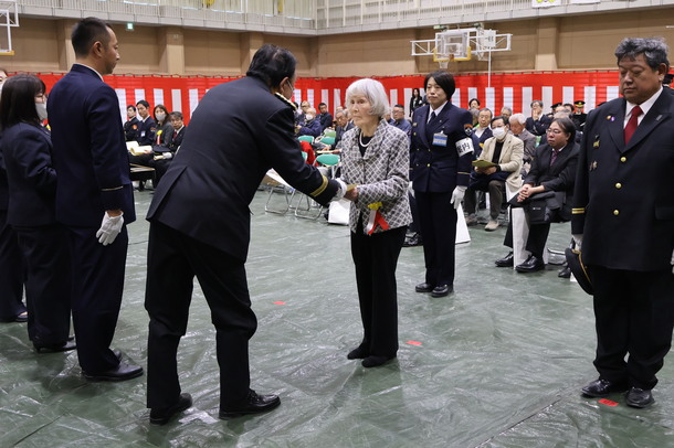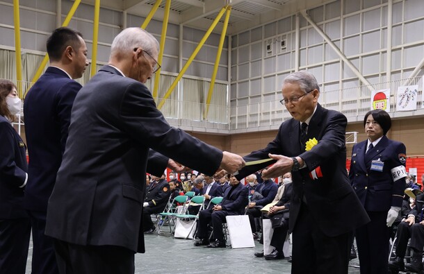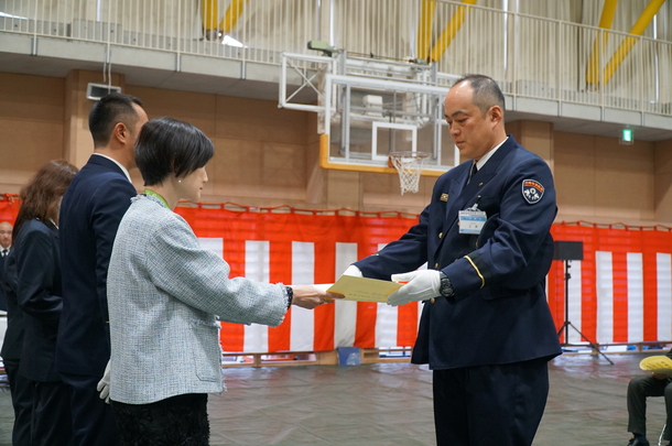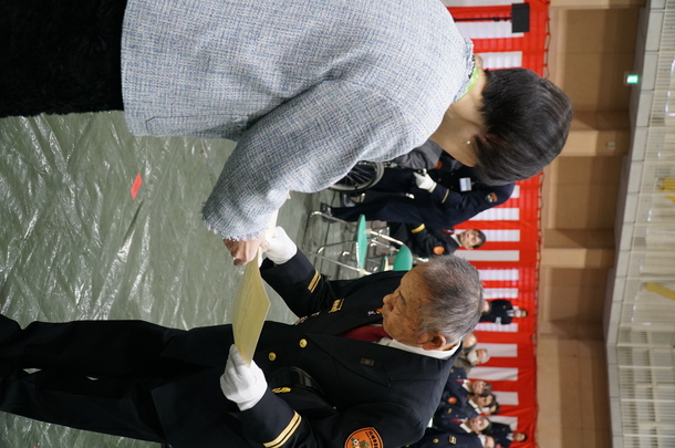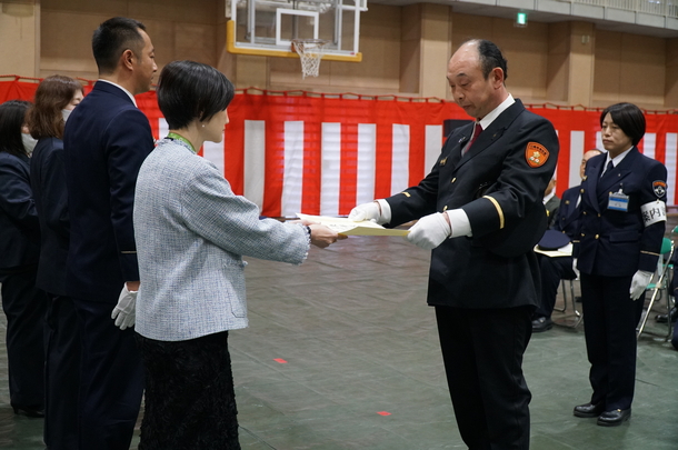 第一部では、屋内において、防火・防災に功績があった個人、団体等への表彰を行いました。