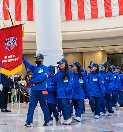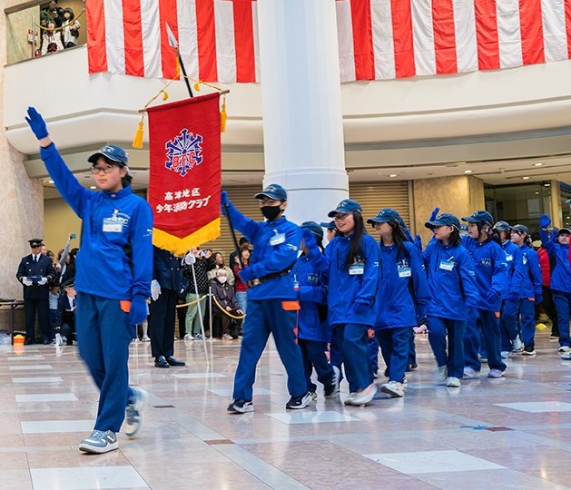 令和8年1月11日(日)かながわサイエンスパークで開催された高津区消防出初式に、高津地区少年消防クラブ員が第6回クラブ活動として参加しました。
