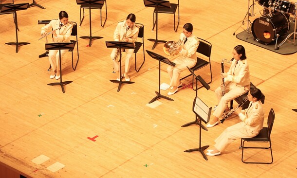 という思いでカラーガード隊による木管5重奏のプレコンサートを行いました。