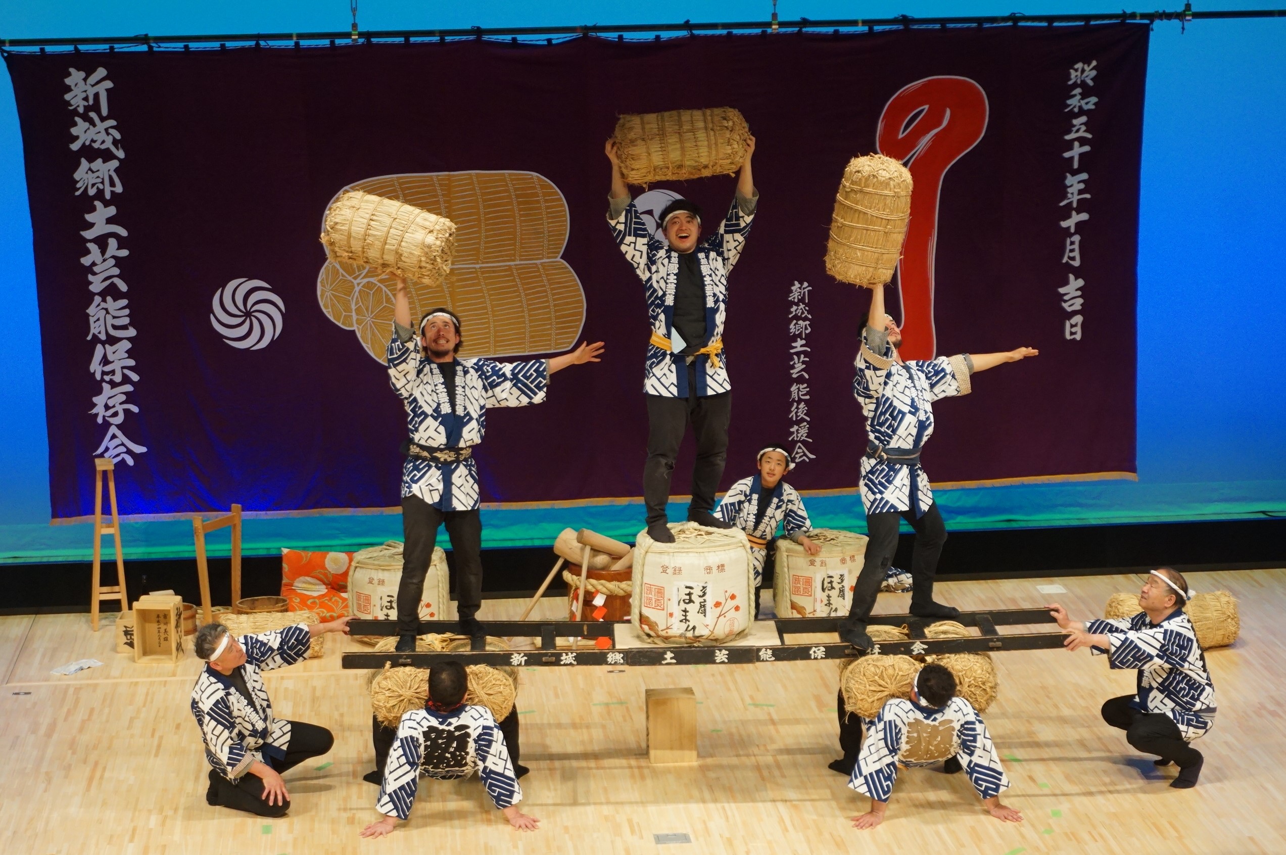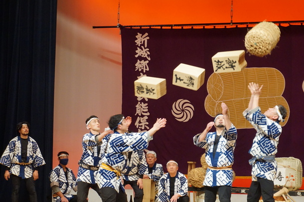 囃子曲持を行なう時は、最初に囃子曲持の由来を述べる口上があって、次に舞台きよめの獅子舞があり、それが終って曲持となる。なお、新城では曲持を行う者を「力士」と呼んでいる。