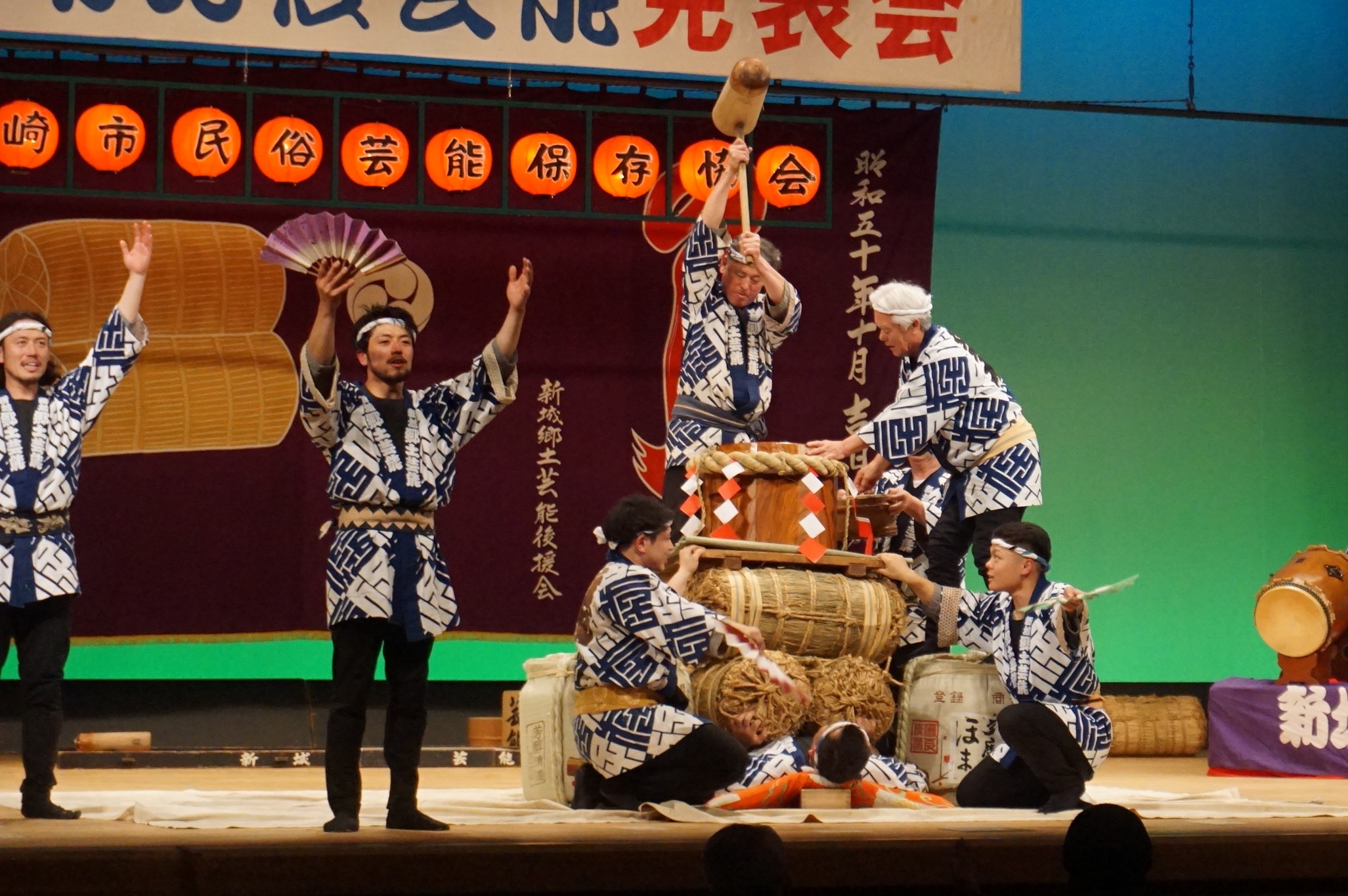 新城の囃子曲持は、曲持に囃子がついたものだが、これは新しい。昭和48年(1973)5月15日、新城小学校創立20周年式に曲持を演じた。この時、今までの曲持連中と祭り囃子連中とが合体して、笛・太鼓などの祭り囃子による囃子曲持として今日に至ったものである。定期的には毎年10月第1日曜日の新城神社(中原区新城中町)の祭りに行なわれる。