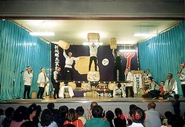 囃子曲持を行なう時は、最初に囃子曲持の由来を述べる口上があって、次に舞台きよめの獅子舞があり、それが終って曲持となる。