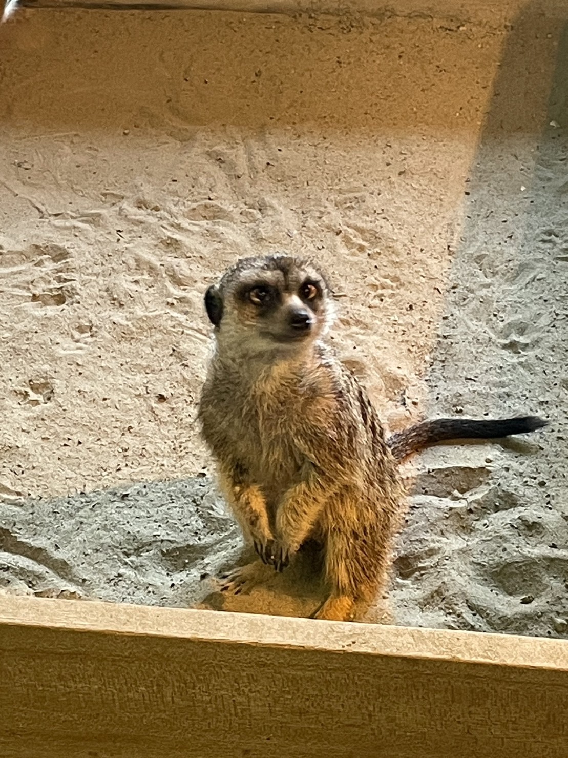 マングースの仲間(なかま)で、南(みなみ)アフリカの原野(げんや)に穴(あな)をほったり岩(いわ)の間(あいだ)に大家族(だいかぞく)で住(す)んでいます。