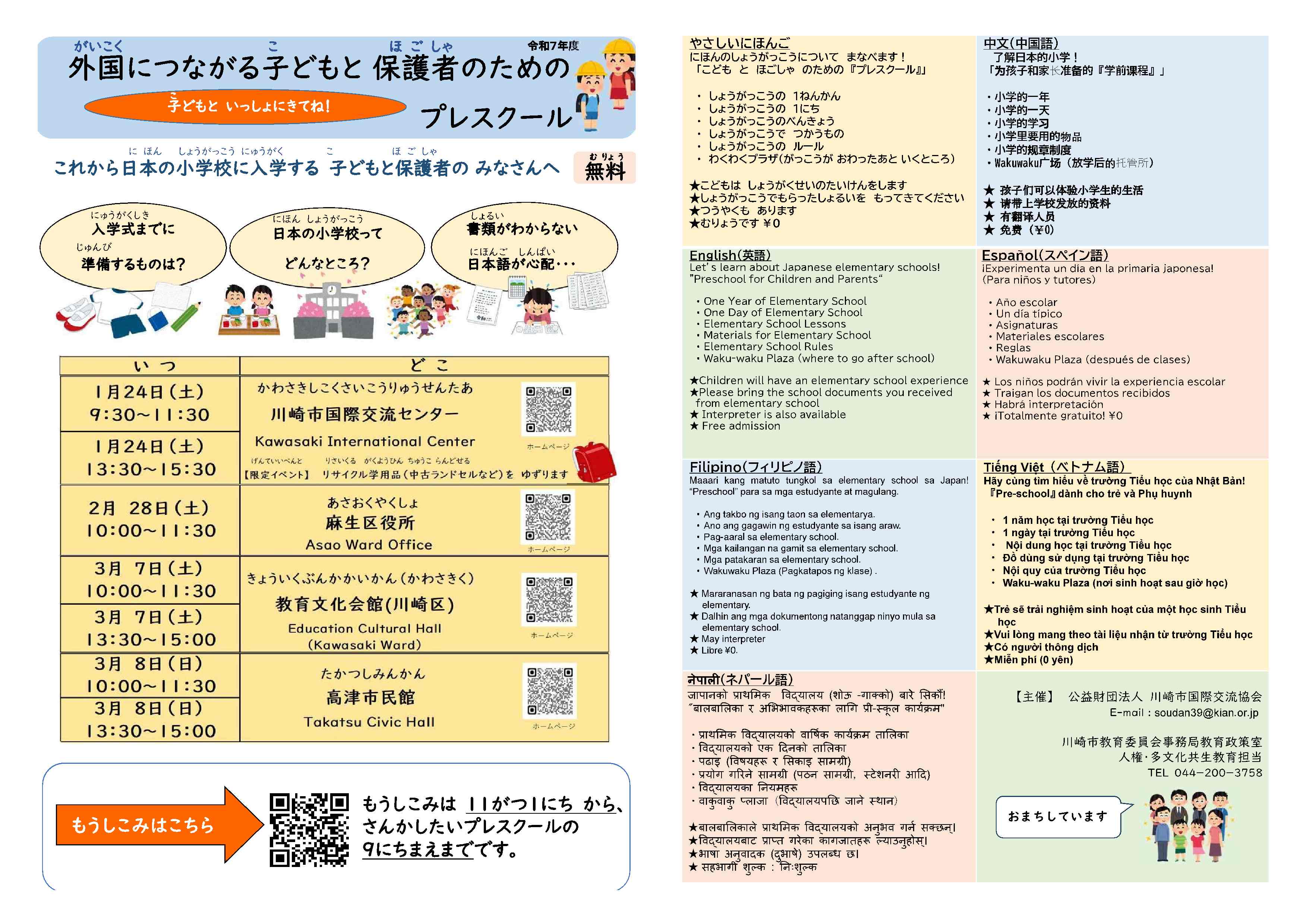 【2026】外国(がいこく)につながる子(こ)どもと保護者(ほごしゃ)のための小学校入学前支援(しょうがっこうにゅうがくまえしえん)「プレスクール」を行(おこな)います!