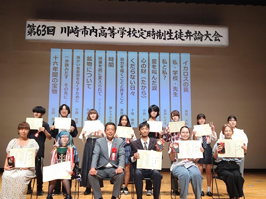 本大会は、定時制教育の一層の振興を図るため、原議長が会長を務める「川崎市内高等学校定時制教育振興会」が主催し、市内定時制6校から選抜された弁士による発表が行われました。