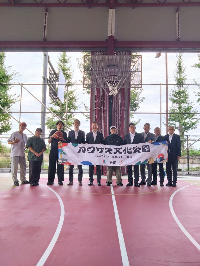 セレモニーでは、運営者である株式会社ディー・エヌ・エー スポーツ・スマートシティ事業本部川崎拠点開発室室長の元沢氏、株式会社DeNA川崎ブレイブサンダース社長の川崎氏及び福田市長からの挨拶の後、ダブルダッチ(Millennium