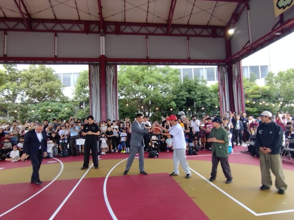 Collection、KEITA:REG☆STYLE)、フリースタイルバスケ(Lee:降神(オリガミ))、ブレイキン(RAM、TSUKKI、Shigekix)のパフォーマンスが披露されました。セレモニーのフィナーレでは、登壇者全員がボールをつなぎ、最後に川崎ブレイブサンダースの篠山竜青選手がシュートを決める投げ初め式が行われ、多くの観衆のもと、盛大にセレモニーが行われました。