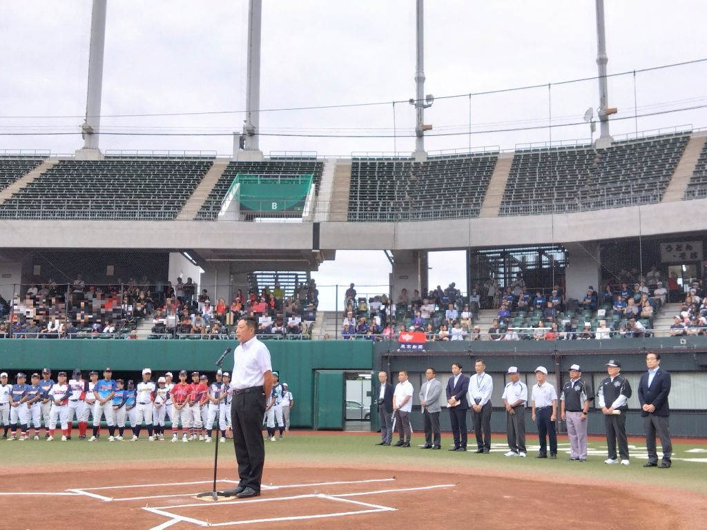 9月27日(土)、「第36回川崎市学童軟式野球大会」が等々力球場で開催され、開会式に原議長が出席し、市議会を代表して挨拶を行いました。