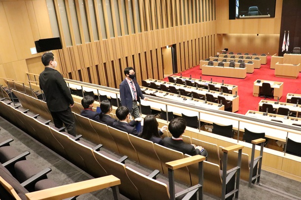 グループごとに傍聴席や議会図書室、委員会室の見学を行いました。