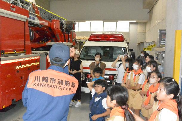 少年消防クラブは、1984年アメリカのロサンゼルス市で火災が多発し、火災予防に協力するために作られたのが始まりです。川崎市では、平成2年11月3日に、幸地区で最初に作られたのが始まりで、1年の任期で各種活動を実施しています。