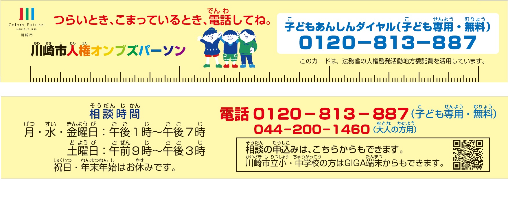 ・子どもあんしんダイヤル 0120-813-887(子ども専用・無料)