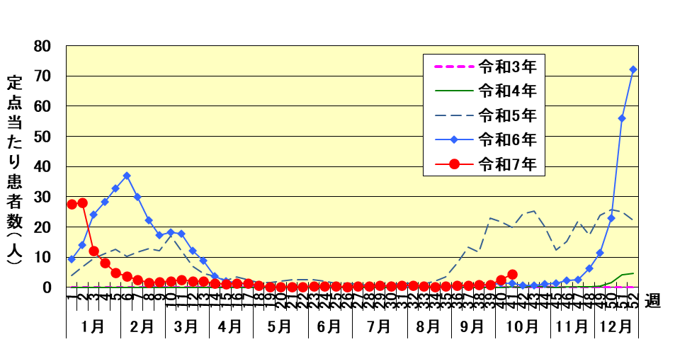 ・令和7年第41週の定点当たり報告数は4.48人でした。