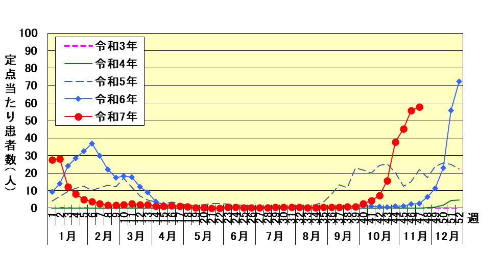 ・令和7年第47週の定点当たり報告数は57.73人でした。