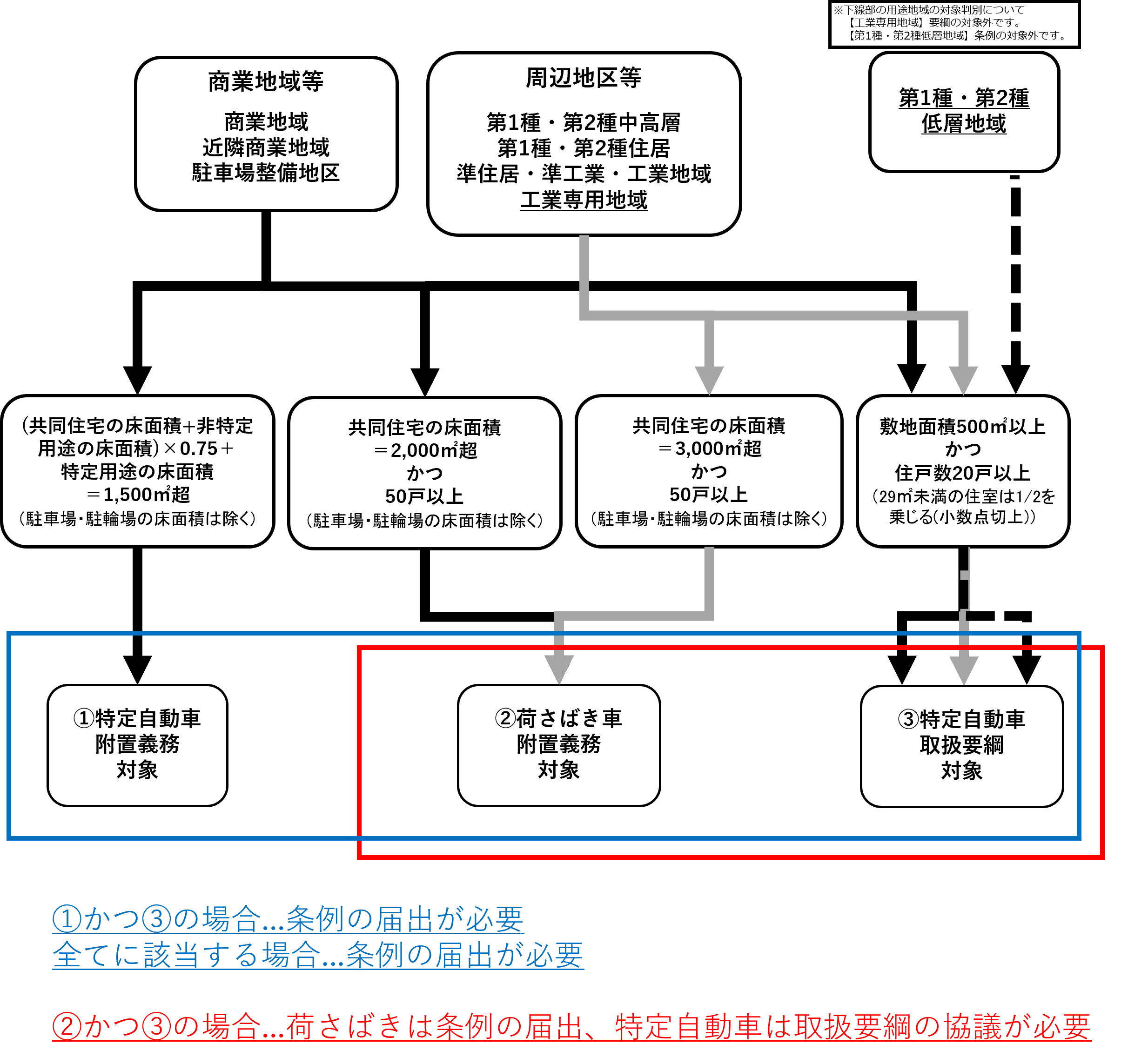 地区内の駐車施設の附置の判別については、簡易判別フロー等で御確認ください。