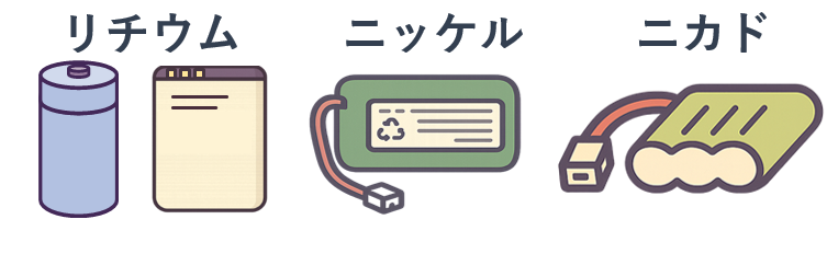 ・リチウムイオン電池等は下記「充電式電池(内蔵製品を含む)」のとおり、絶縁して透明な袋に入れ、貼り紙をして出してください(30cm以上の場合は粗大ごみとして出してください)。詳細は「【令和7年11月から】充電式電池(リチウムイオン電池、モバイルバッテリー等)の出し方」をご参照ください。