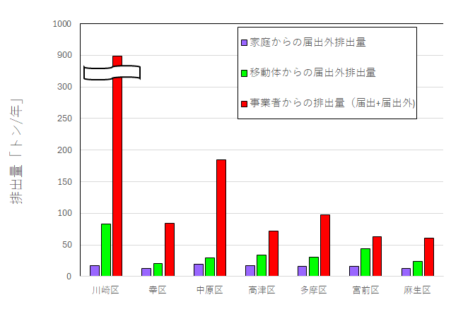 このページでは、令和5年度実績の川崎市域分の届出外排出量の集計結果について、概要を示します。