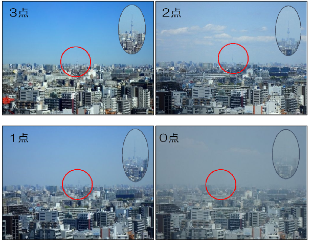 遠くの建物などの見え具合から、大気(空気)のきれいさを判定する調査です。