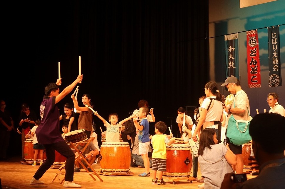 ひばり太鼓会。子どもたちによる元気な演奏や、祭り囃子の明るく楽しい演奏を披露しました