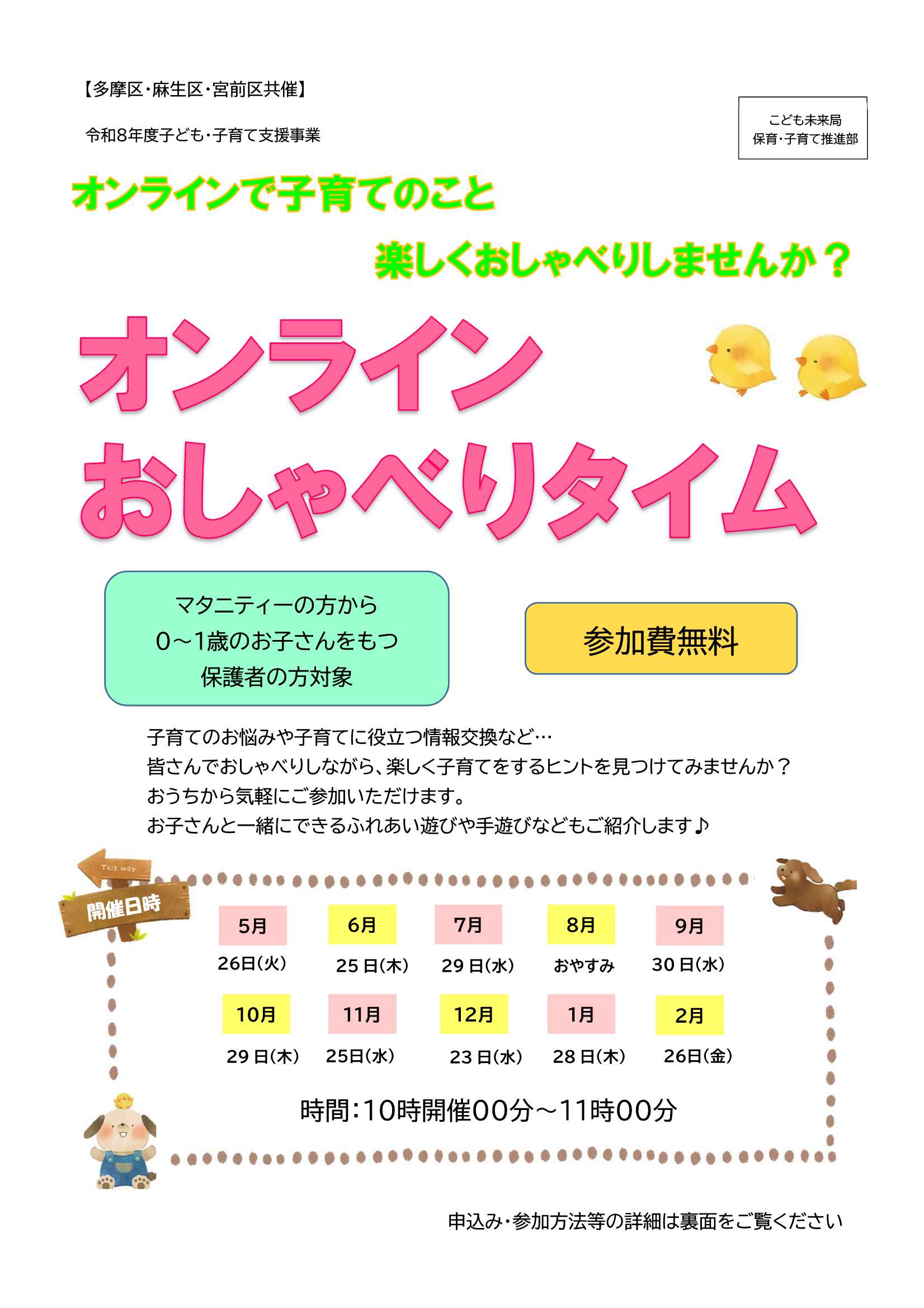 【多摩区・麻生区・宮前区共催】オンラインおしゃべりタイム