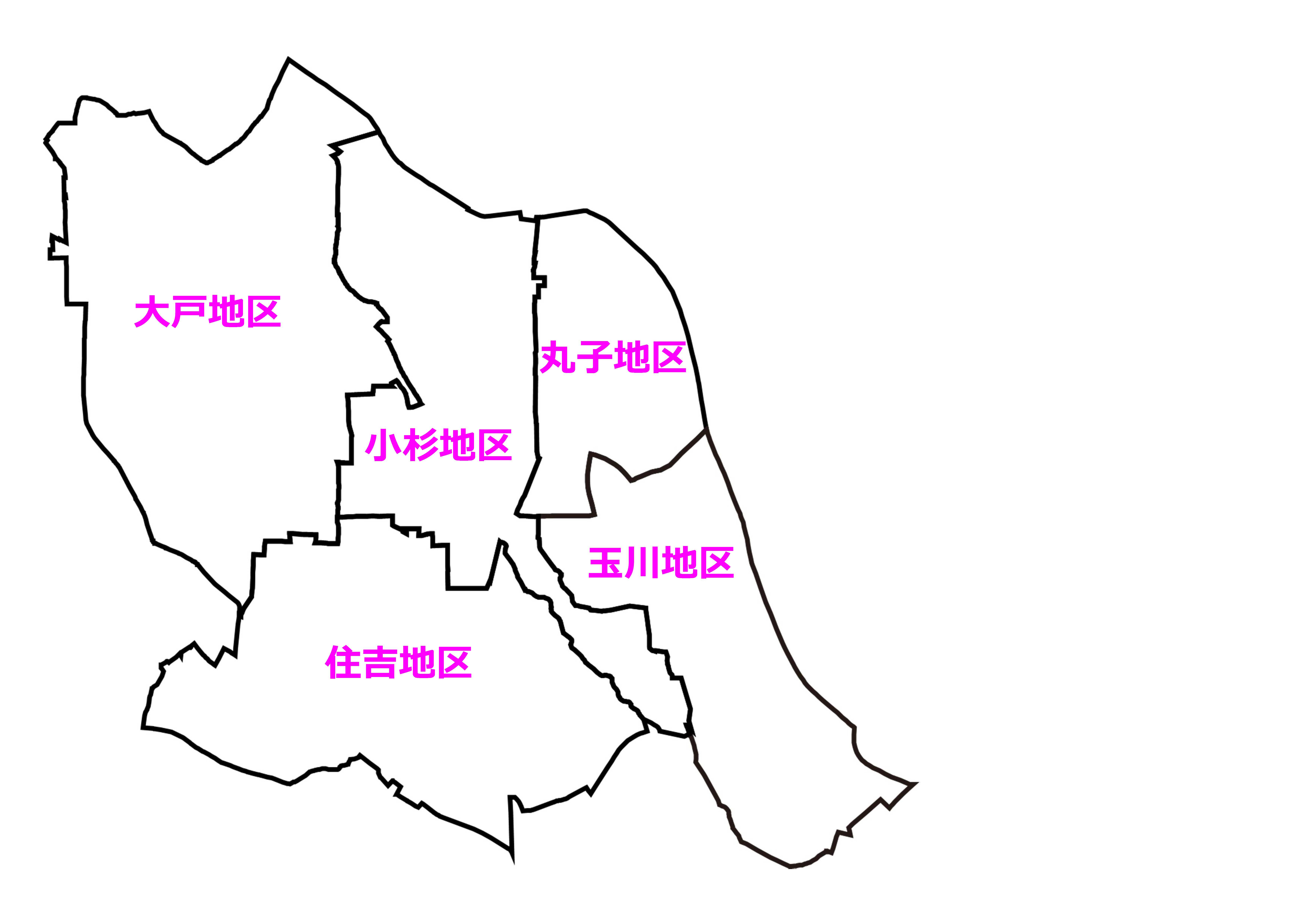中原区を5地区に分け、地域情報と、情報をもとに地域の特徴や課題等を分析した内容をまとめたものです。