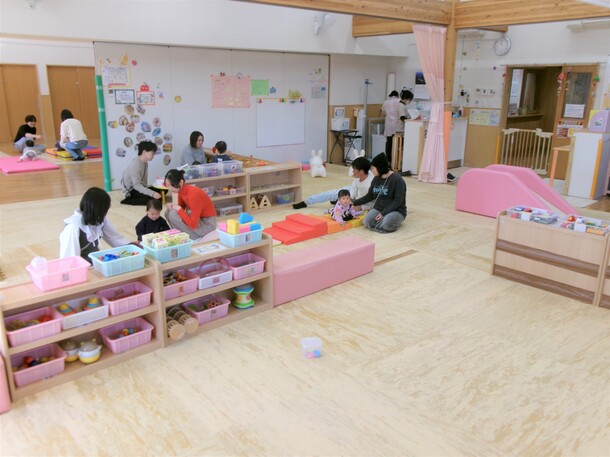 中原区保育・子育て総合支援センターの2階にあります。0歳児から就学前までの子どもと保護者が遊べるスペースです。子育て世代の交流や専任スタッフへの育児相談のできる身近な場としてご利用ください。