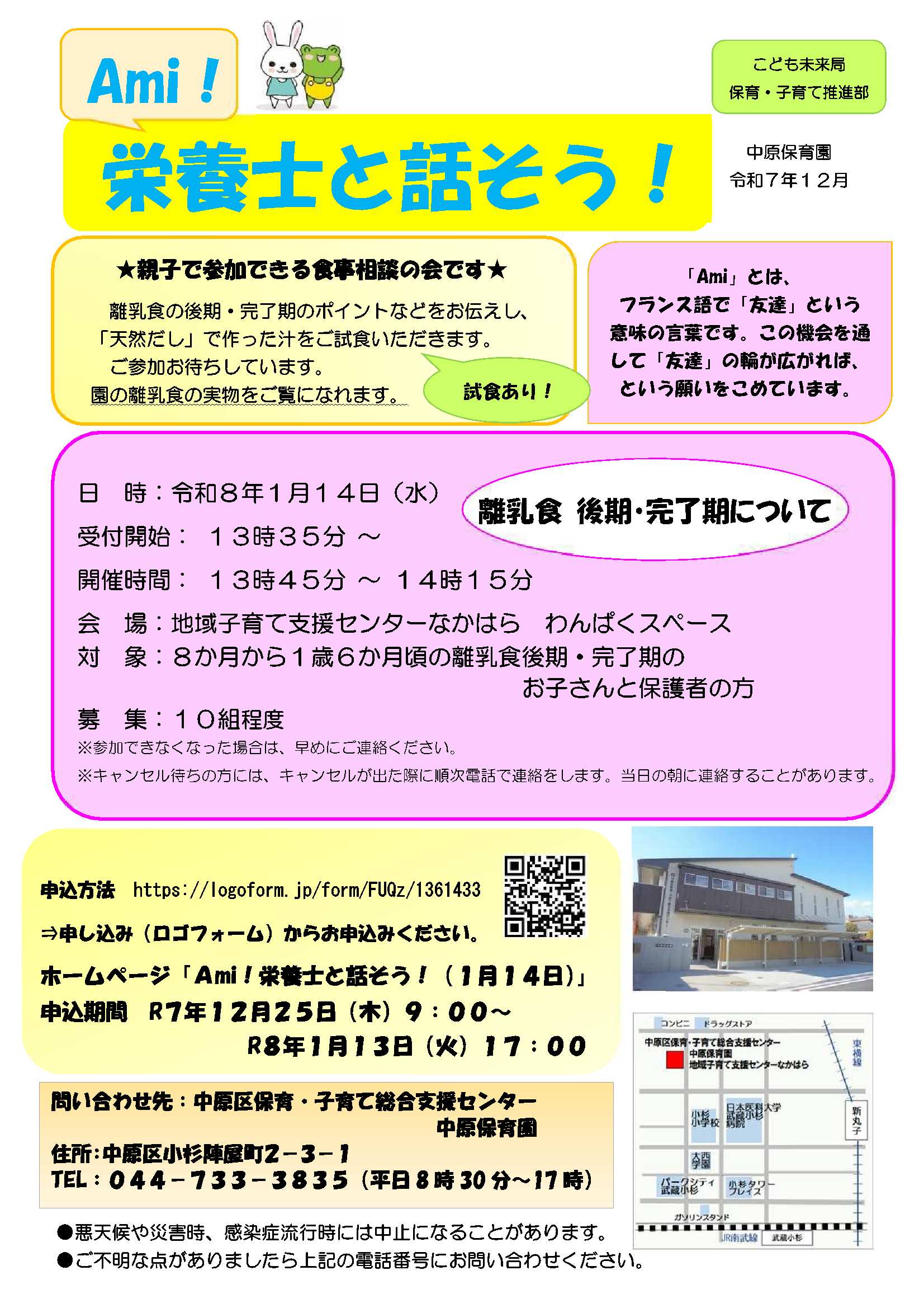 中原保育園 離乳食講座<Ami!栄養士と話そう!>