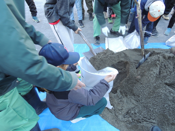 火災時を想定した脱出シューターの体験や、土のう作成、消火・救命訓練、車両の展示のほか、手話通訳体験や応急給水開設の実演等を行いました。