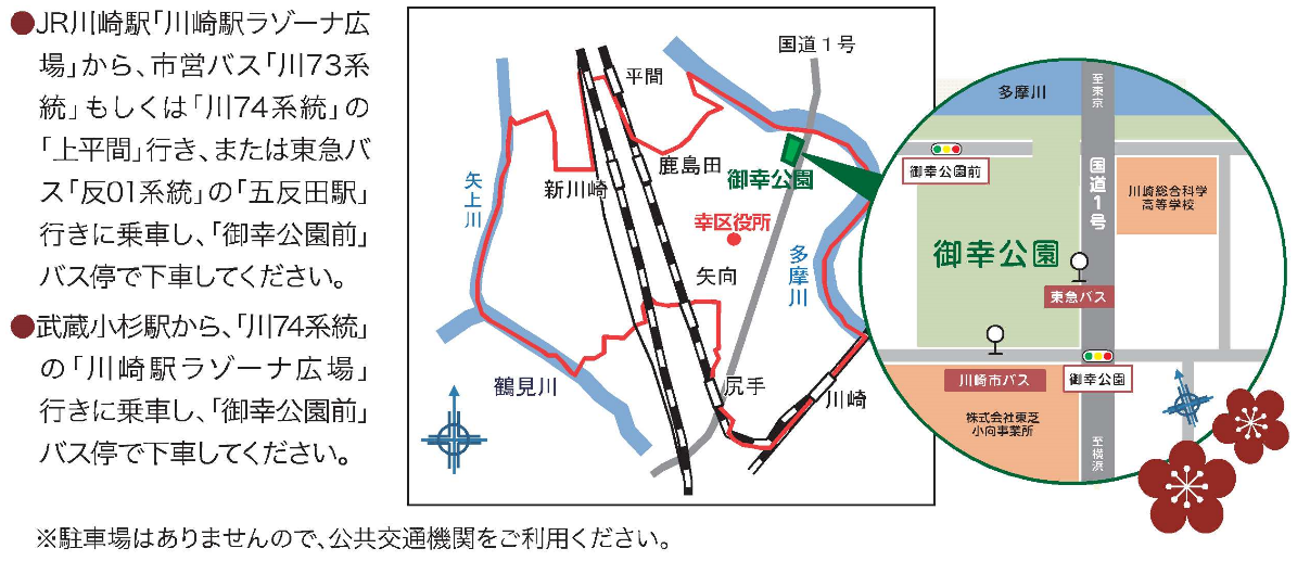 JR川崎駅または武蔵小杉駅よりバス「御幸公園前」下車