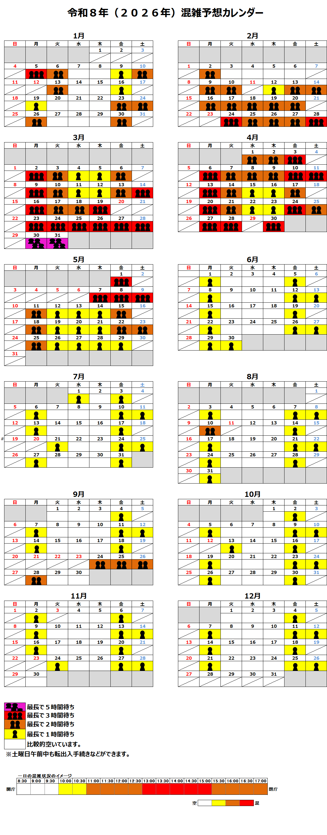 それ以外の日であっても、午前11時から午後3時頃までは比較的混雑しますので、時間に余裕を持ってお越しください。