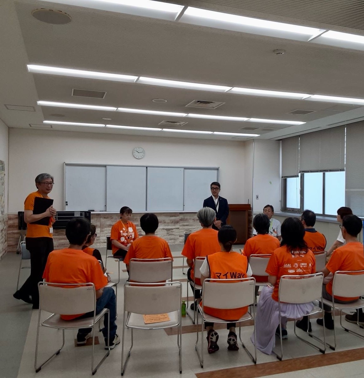 9月20日にNPO法人マイWayで働く若年性認知症の当事者の方々が高津区長を訪問しました。当日は、天気も良く若年性認知症の方々がオレンジ色の服を着て、事業所から区役所までの1kmを歩いて来られています。日頃の活動について説明された後、マイWayで焙煎したコーヒー豆を高津区長にプレゼントしてくれました。ご自身の日ごろの生活や職場での様子をお話ししてくれました。