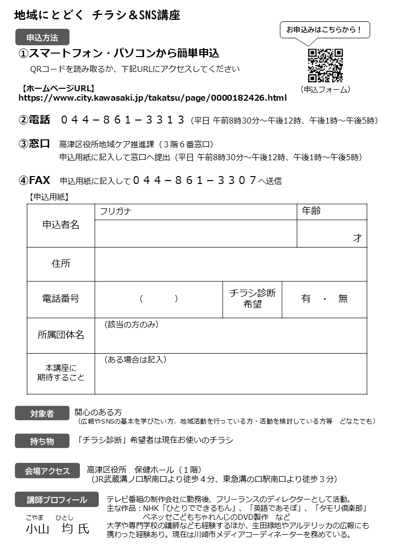 「地域にとどく『チラシ&SNS講座』」を開催します!