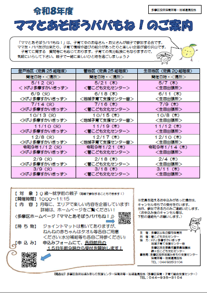 令和8年度「ママとあそぼうパパもね!」チラシ