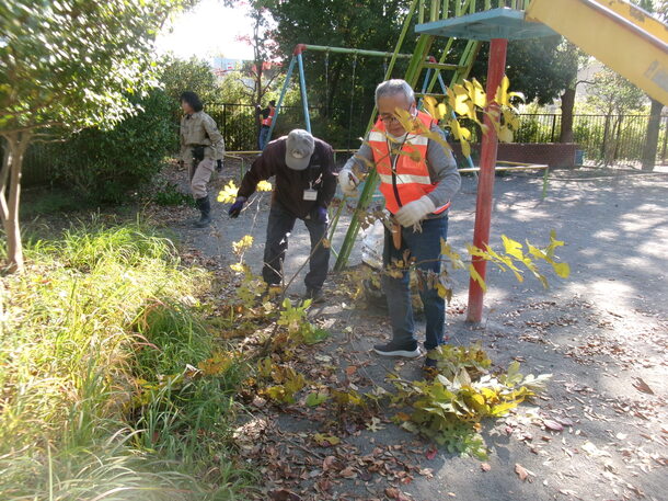 南生田2丁目公園では、地域の方が管理運営協議会として公園内の除草や清掃などの公園愛護活動を行っています。