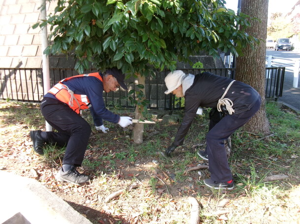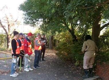 川崎市では、公園愛護活動の支援として、剪定の技術や公園 の維持管理方法を学ぶために剪定講習会を開催しており、令和7年11月15日土曜日に南生田2丁目公園で1時間程度、低木の剪定の実習作業を行いました。